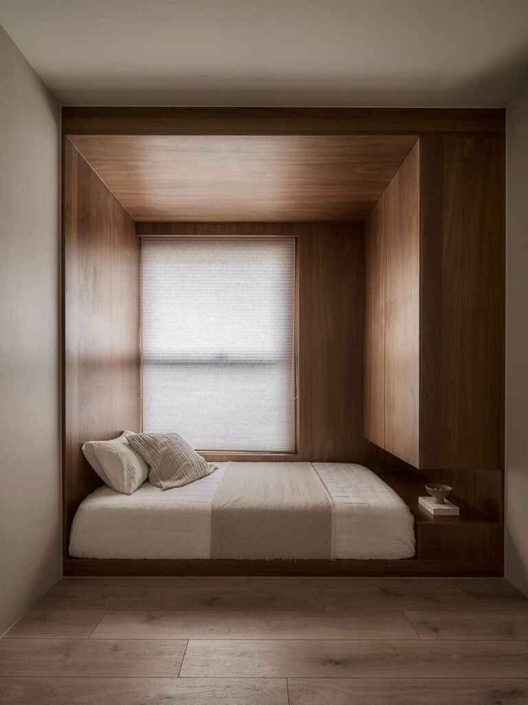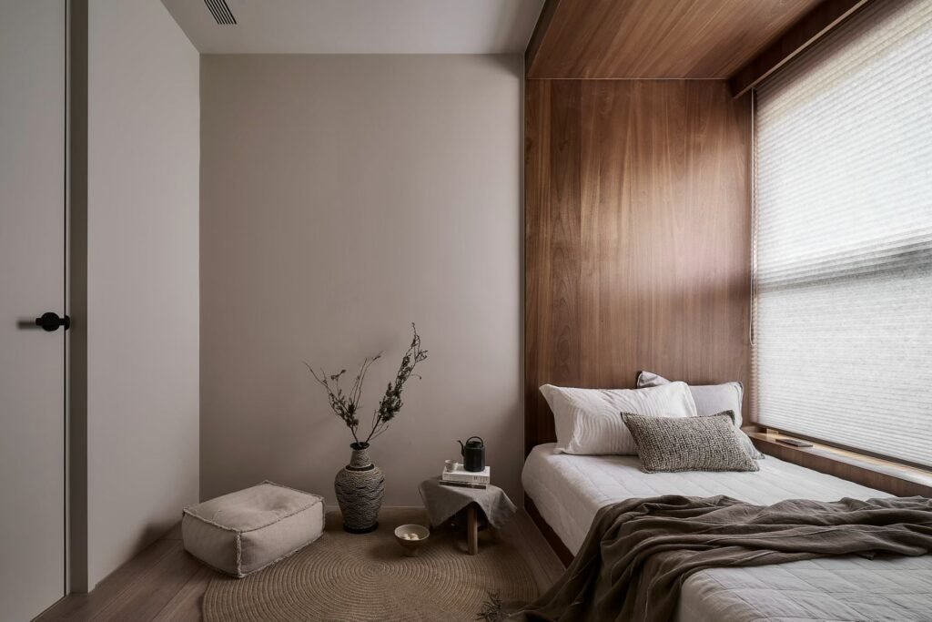 每個空間皆享有充足的自然採光,搭配低色溫燈光設計,宛如精品飯店般的舒適氛圍。無床架設計的主臥與次臥,讓床鋪更貼近地面,增加孩子活動的安全性與自由度。全戶選用低甲醛易清潔塗料,搭配全熱交換系統,讓這個家不僅舒適,更能守護全家人的健康。