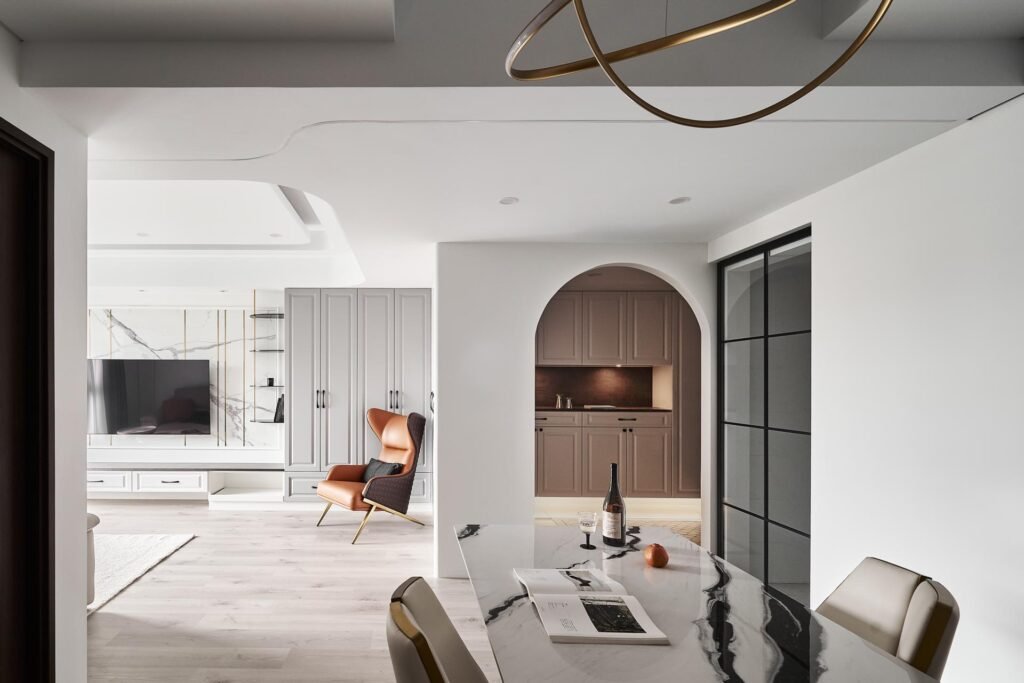 此外,從門廳到社交區域的拱門設計,則是「樂男孩」的一大亮點。這樣的設計不僅增強了空間的統一性和流動性,也讓每次回家都成為一種儀式感,仿佛在歡迎您回到一個熟悉而舒適的世界。