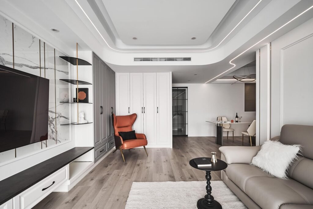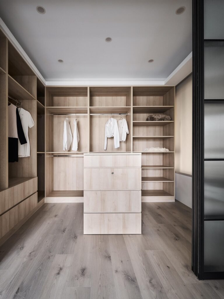 這棟公寓在空間利用和動線設計上都經過精心考量。設計師將一個房間與主臥室相連,並將其定義為更衣室,這樣的設計不僅提升了空間的使用效率,還讓生活變得更為便利。想象一下,早晨起床後,輕鬆步入更衣室,選擇當日的服裝,為一天的開始增添幾分從容。